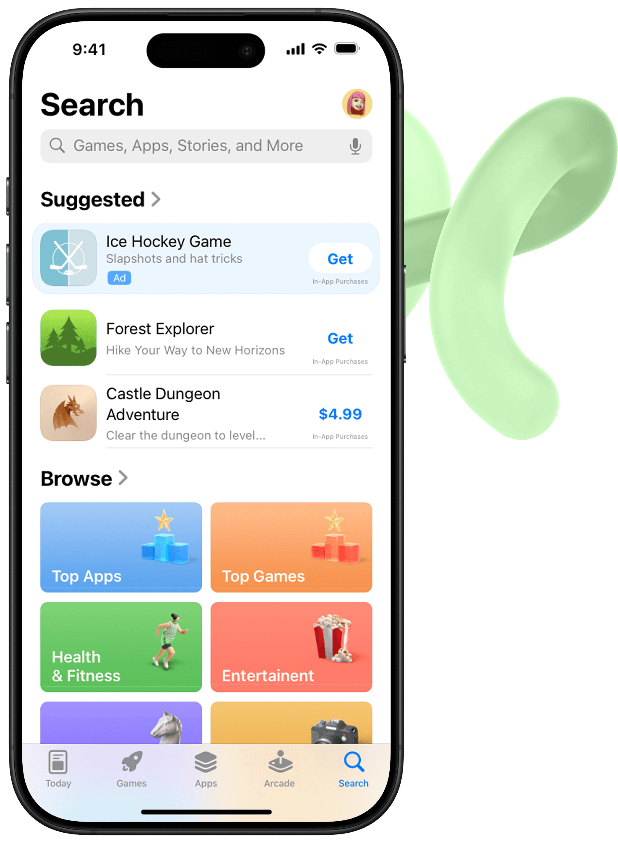 Leverage timely events to appear in the "Today" tab and search results, re-engaging lapsed users.